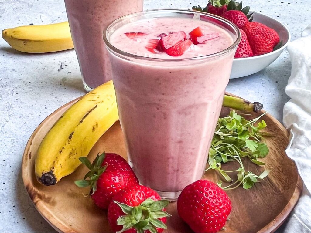 Fresh squeezed and blended with strawberries, banana and honey