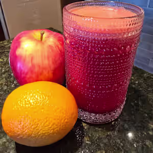 orange, apple, carrot apple, carrot beet or lemonade